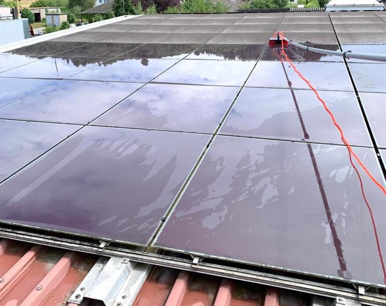 Solarpanel (PV-Module) sind bei leichten Verschmutzungen in der Regel Selbstreinigend. Dies ist allerdings stark abhängig von der Neigung der Module. Flächere Module reinigen sich schlechter als solche wo an einem steilen Dach installiert sind.